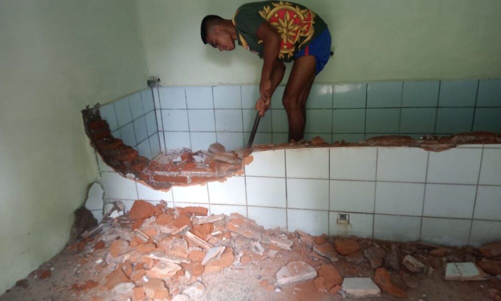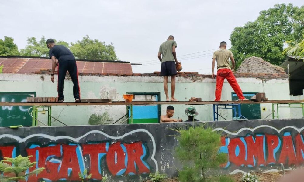 Pendiv2 – Anggota Yonzipur 10/Jaladri Palaka melaksanakan Latihan Dalam Satuan (LDS) Konstruksi berupa kegiatan memperbaiki/rehab Kamar mandi yang ada di Barak Kompi Zipur A guna mengoperasionalkan kembali Kamar Mandi Barak Remaja yang sudah rusak. Senin (06/05/2024).